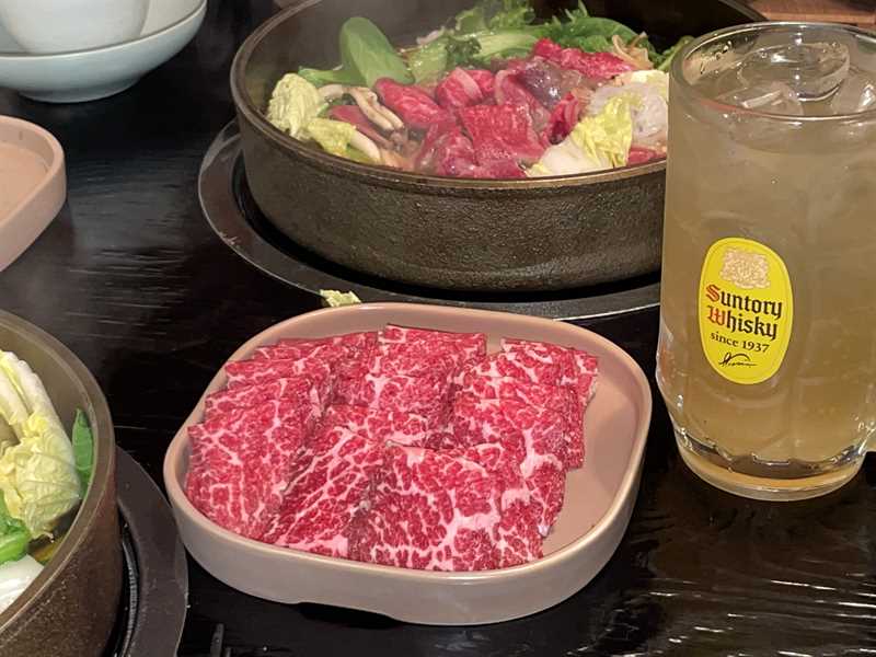 일단 나 이렇게 제대로 된 스키야끼는 첨 먹어봤엉!! 근데 진짜 너무 맛있어서 놀랐음.. 첨에 야채 조금 익혀주다가 그다음에 간장육수? 같은거 붓고 간 약하면 채수 더 부어서 먹는건데 일단 육수 맛이 .. 진짜 간도 딱 좋고 첨 먹어보는 맛이라 너무 맛있었음 ㅜㅜㅜㅜㅜㅜㅜㅜㅜ 글고 고기 빗깔 보이지.. 진짜 마블링이 장난 아님.. 약간 얼어 있는데 고기 질 진짜 좋아서 생으로 먹어도 맛있더라고!!