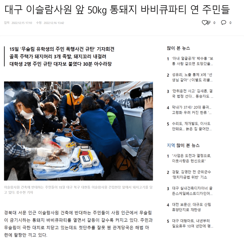 이나라의 중심은 대구가 지킨다. 이슬람꺼져