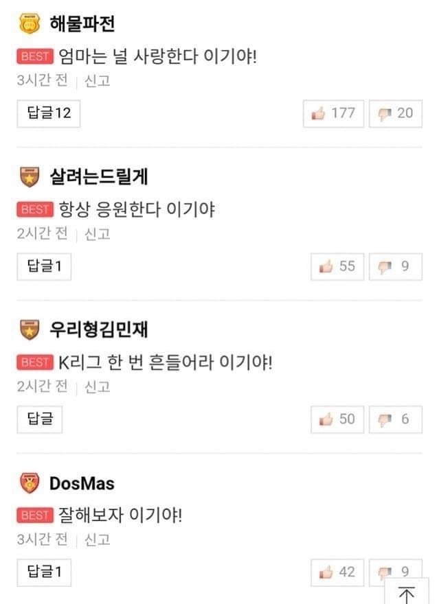 예전에 네이버스포츠 댓글 살아있을때는 이런 베댓단합 보는 것도 꿀잼이었는데ㅋㅋㅋ
