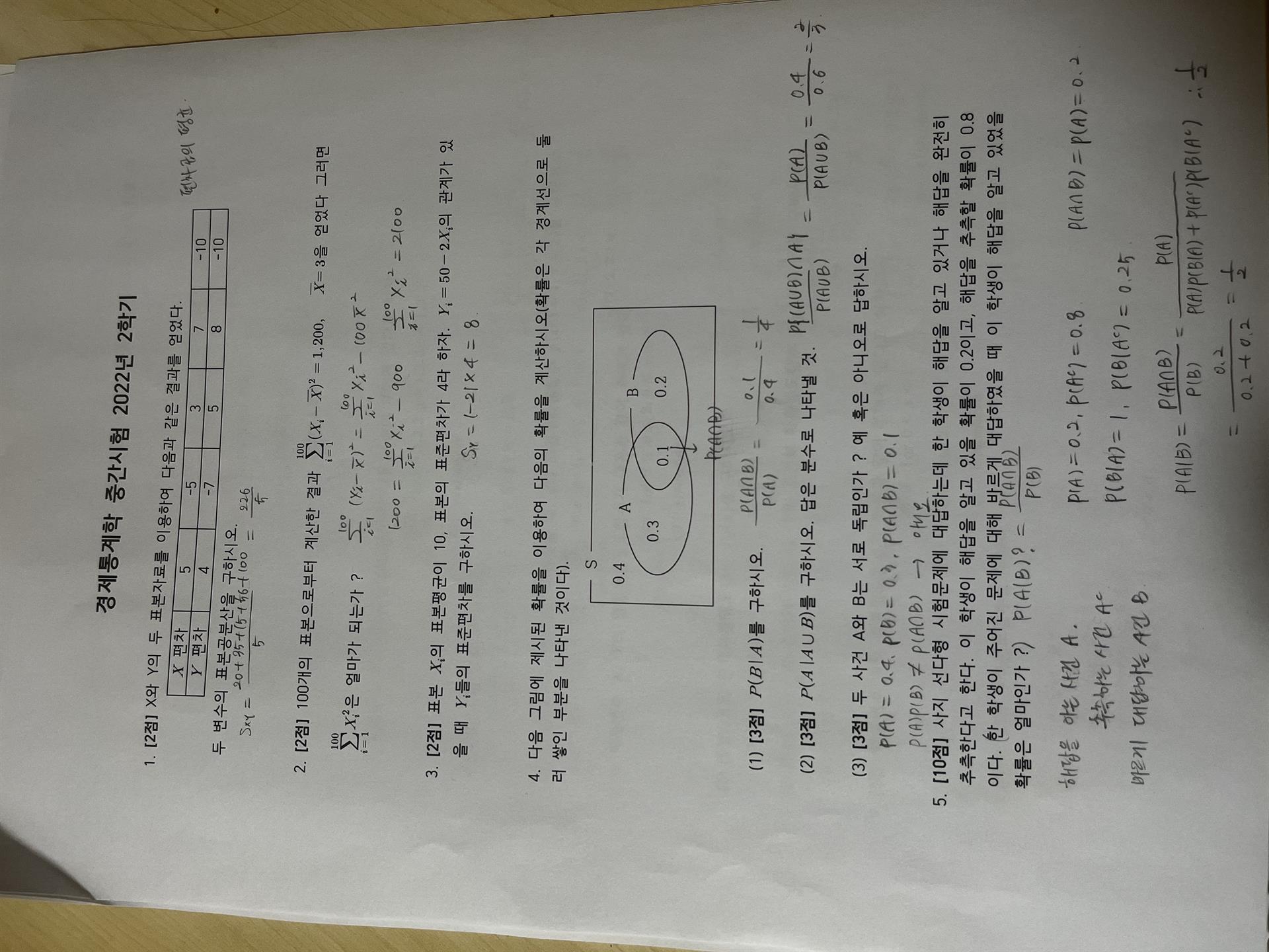 사공용 교수님 / 경제통계학 / 2022-2 / 중간고사