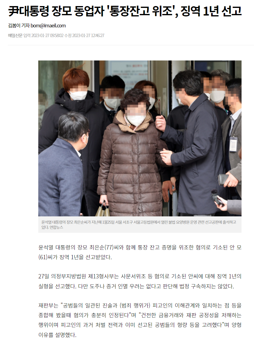 간첩 장모 동업자 '통장잔고 위조', 징역 1년 선고