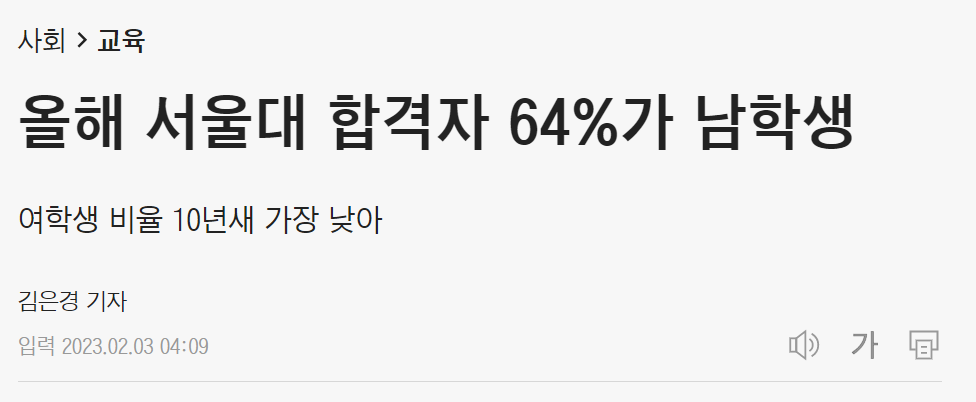 근데 서울대는 64%가 남자라고?? ㅋㅋㅋㅋㅋ 여자가 수학을 못해서?