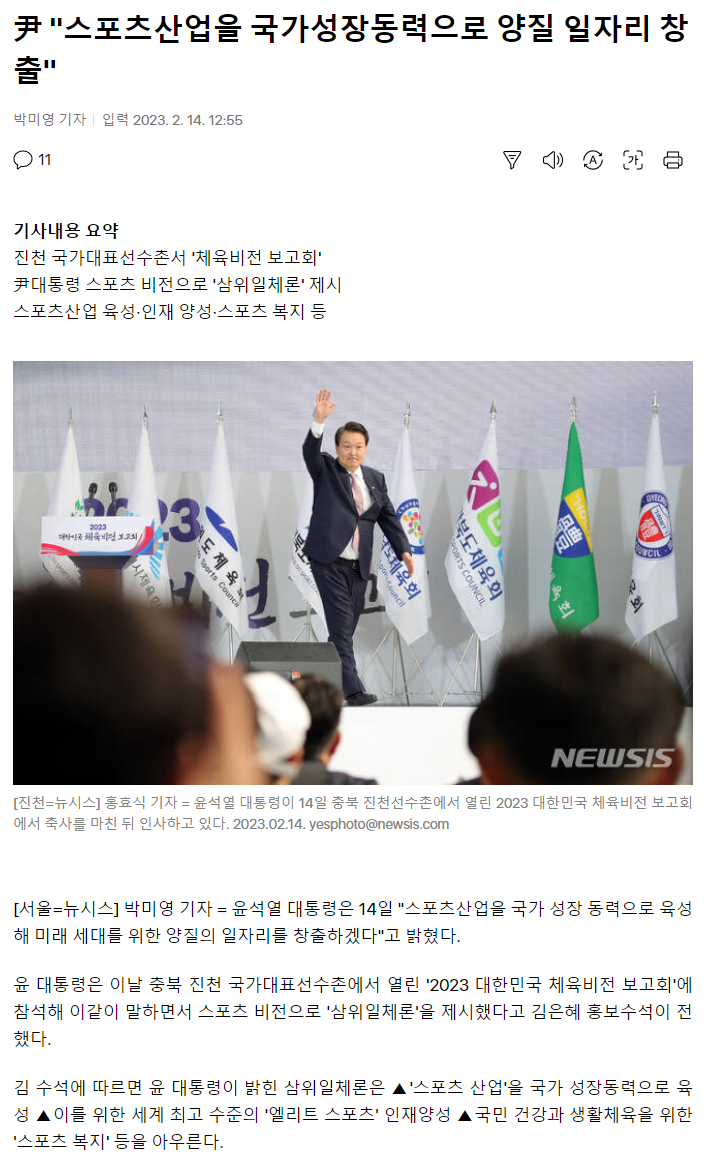 스포츠산업을 국가성장동력으로 양질 일자리 창출
