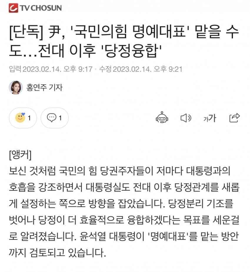 윤, 전대 이후 국민의힘 '명예대표' 맡을 수도