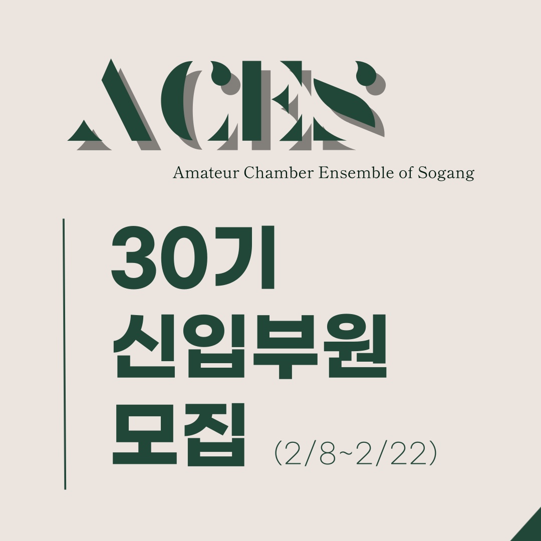 안녕하세요 서강대학교 오케스트라 ACES입니다. 2023년 새학기를 맞아 30기 신입부원을 모집합니다!