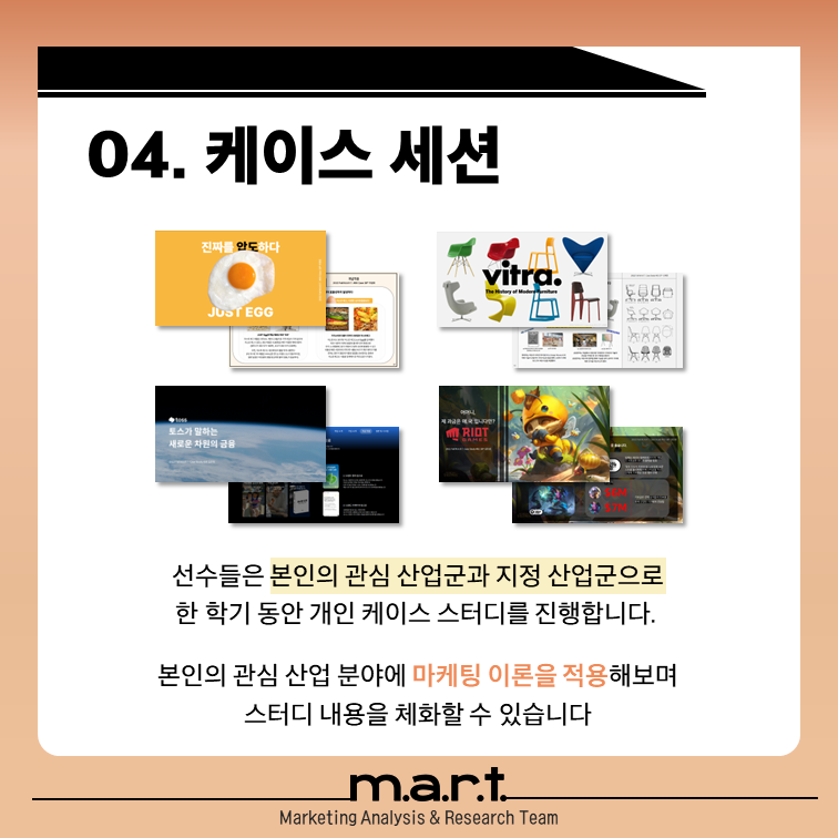 교수님과 고문단, 마트 선수들의 체계적인 피드백과 함께,