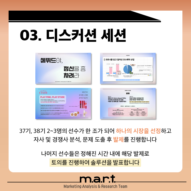- 다양한 시장 브랜드를 분석하고 토의하는 디스커션