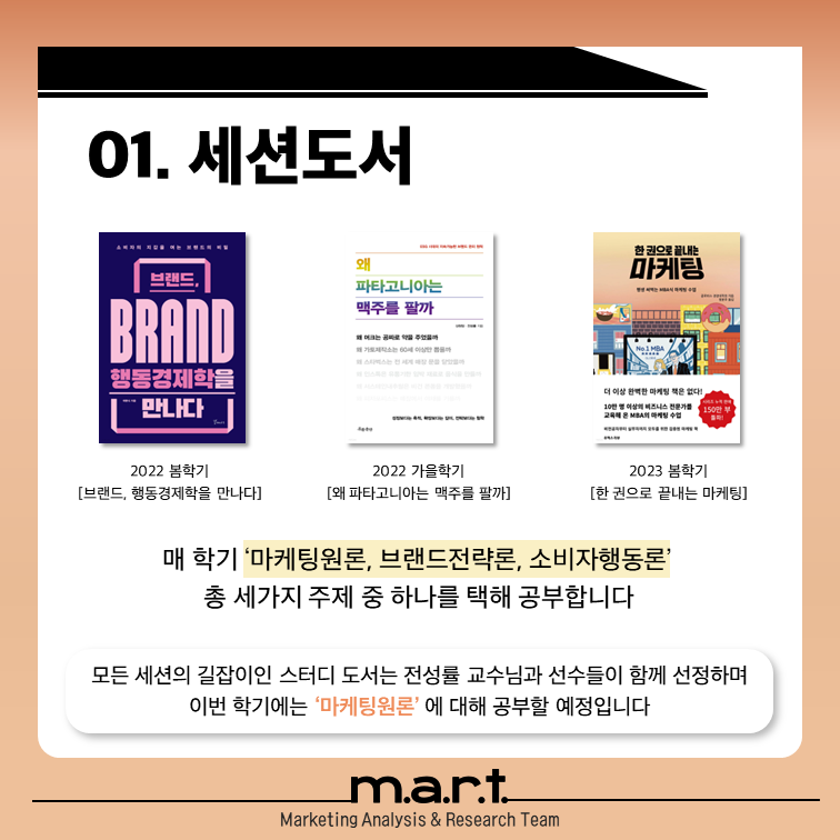 이번 봄학기에는 마케팅 원론을 주제로 한 [한 권으로 끝내는 마케팅]로 세션을 진행합니다.
