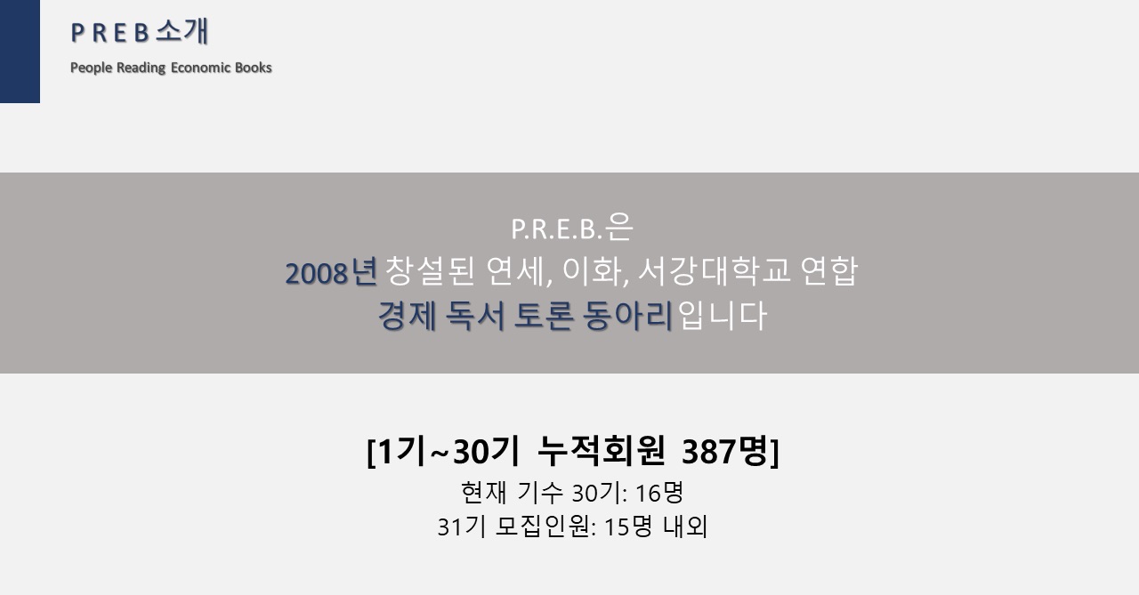 서강&연세&이화 신촌연합 경제독서토론 동아리 P.R.E.B에서 31기 동아리원을 모집합니다!