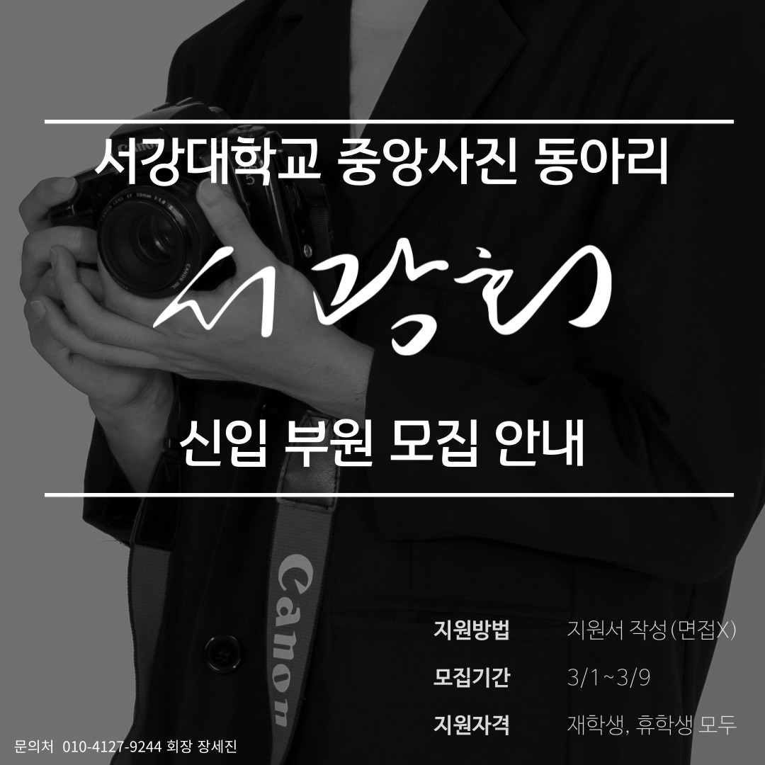 서강대학교 중앙 사진동아리 ‘서광회’에서 신입부원을 모집합니다! (3/1 ~ 3/9)