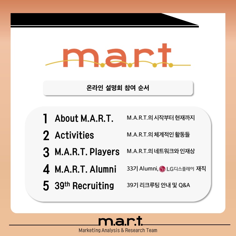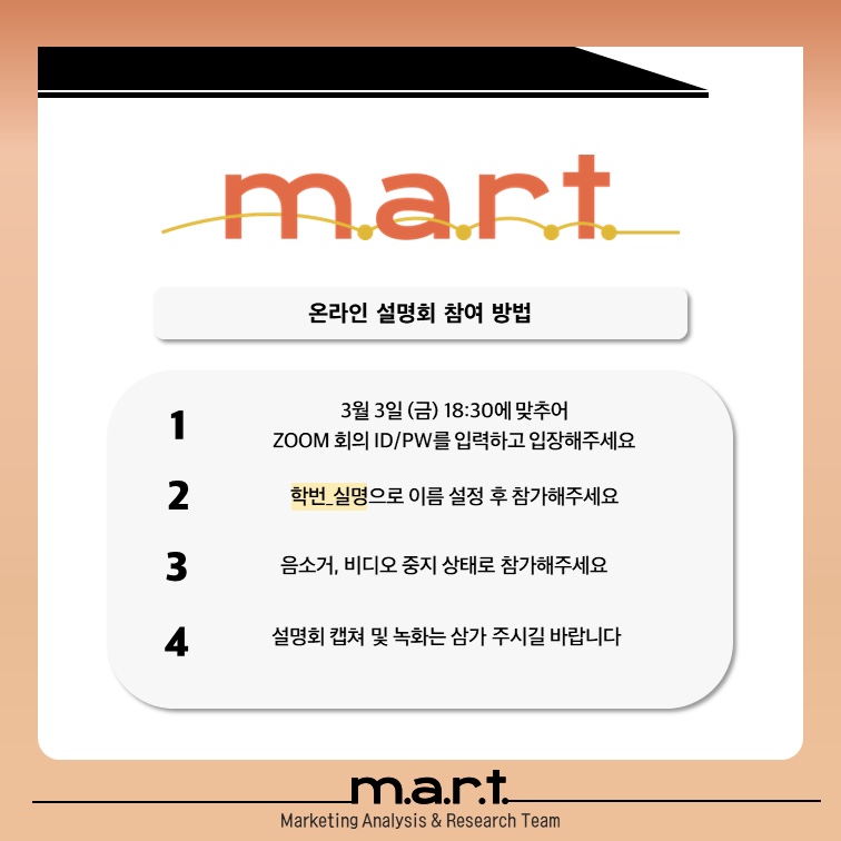 (3/3 금) 오후 6시 30분, 온라인 설명회에서 M.A.R.T. 의 다음 Players를 만나뵙길 기다리고 있겠습니다!