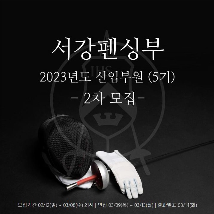 찰나의 순간을 놓치지마라! 안녕하세요! 서강대학교 유일 펜싱동아리 "서강펜싱부"에서 2023년도 1학기 신입부원(5기)을 모집합니다!