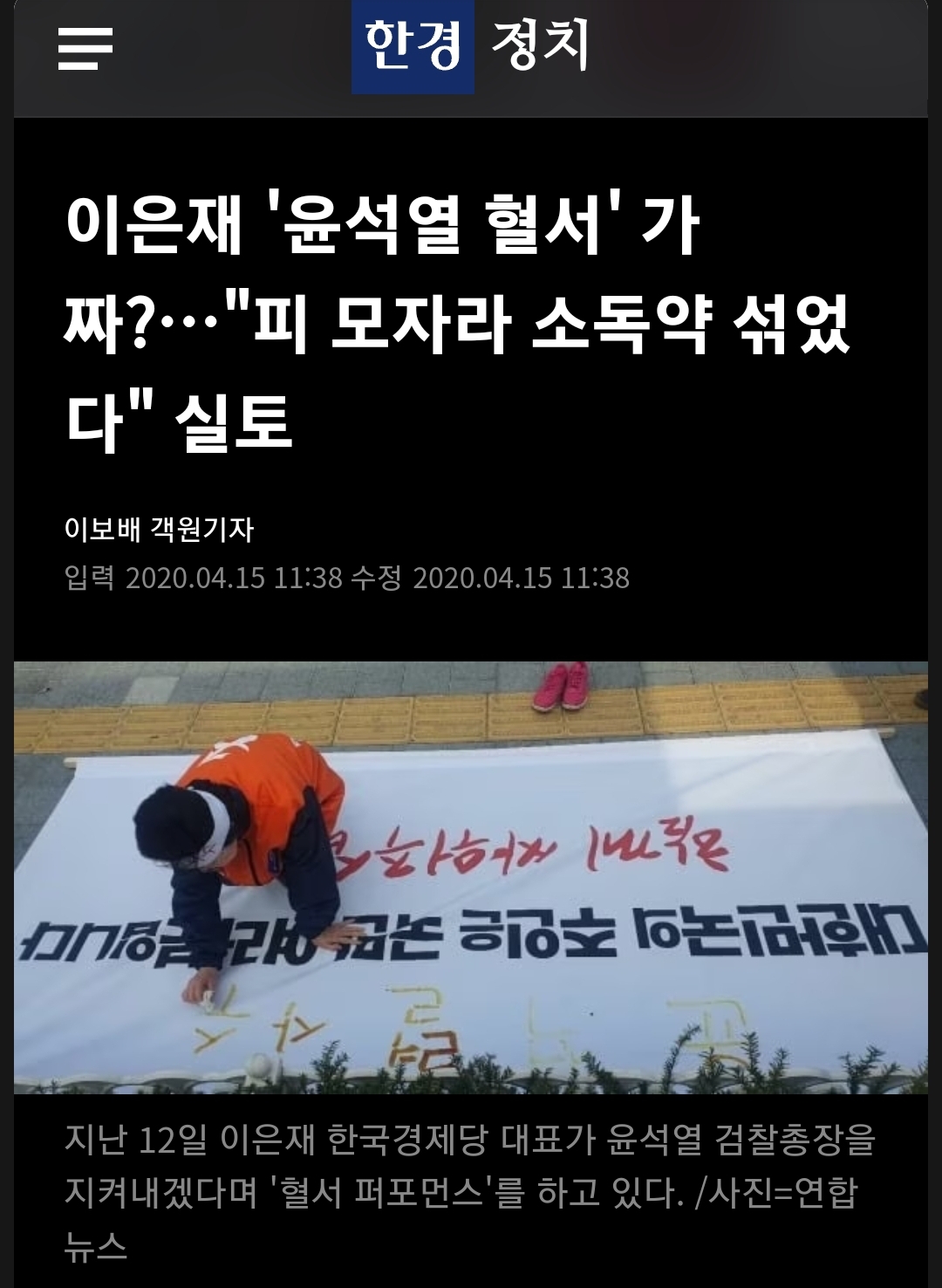 1. 피 부족해서(?) 소독약으로 혈서 퍼포먼스