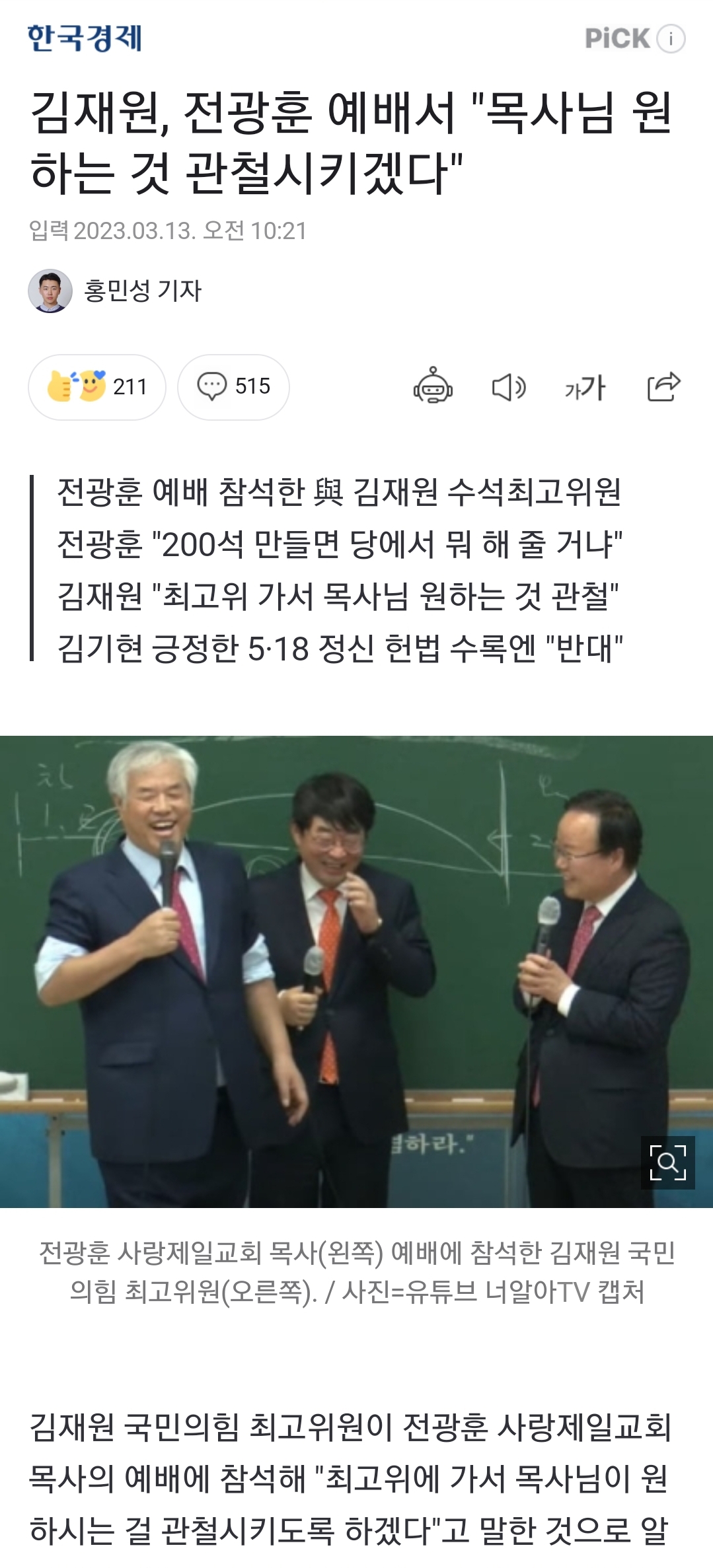 전광훈 목사님 말만 들으면 국힘 200석 가능함??