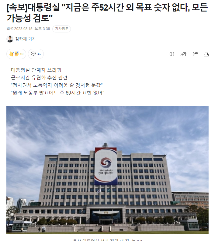 [속보] 국민들이 잘못들은 것. 주 69시간 없다.