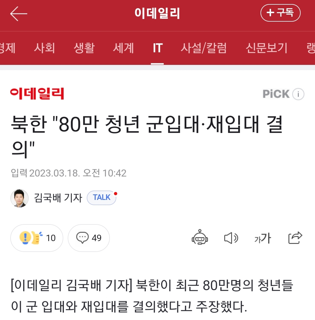 북한남들은 자진해서 재입대도 결의하는데 남한남들은 군대 힘들어 밥줘 안갈래 ㅇㅈㄹ