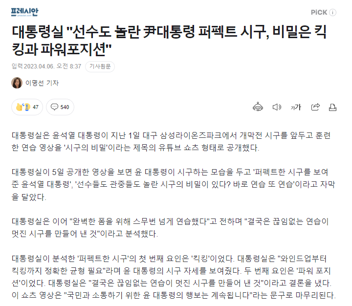대통령이란 새끼가 시구 폼 연습이나 쳐하고있노..이러니 나라가 망하지 ㅠㅠ