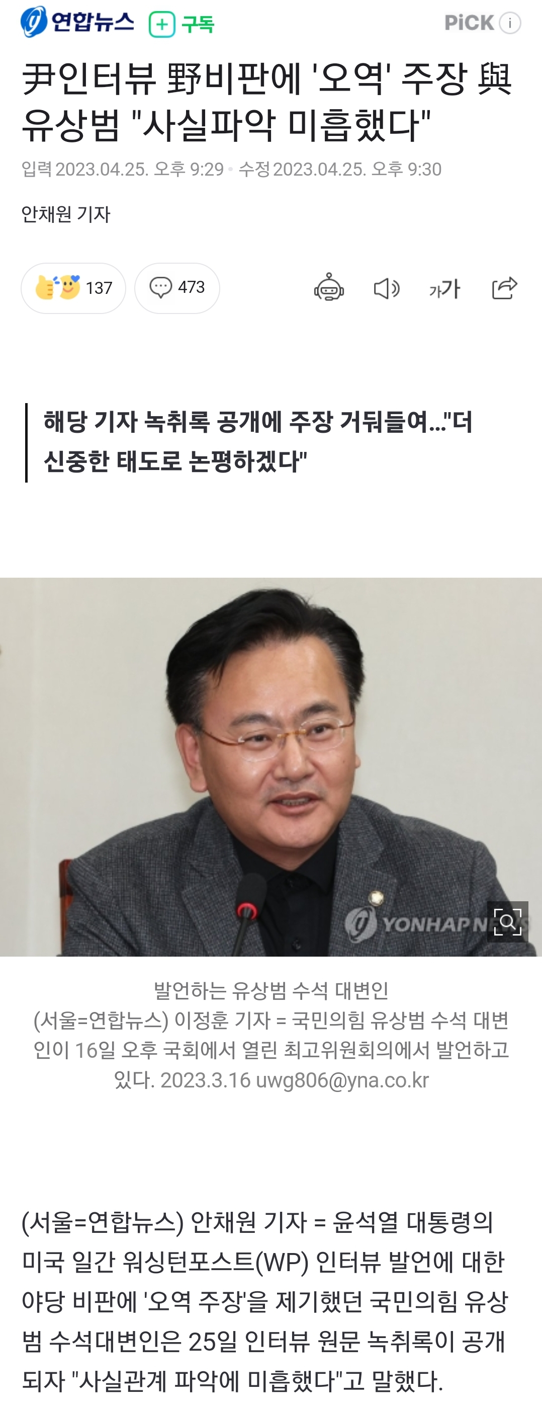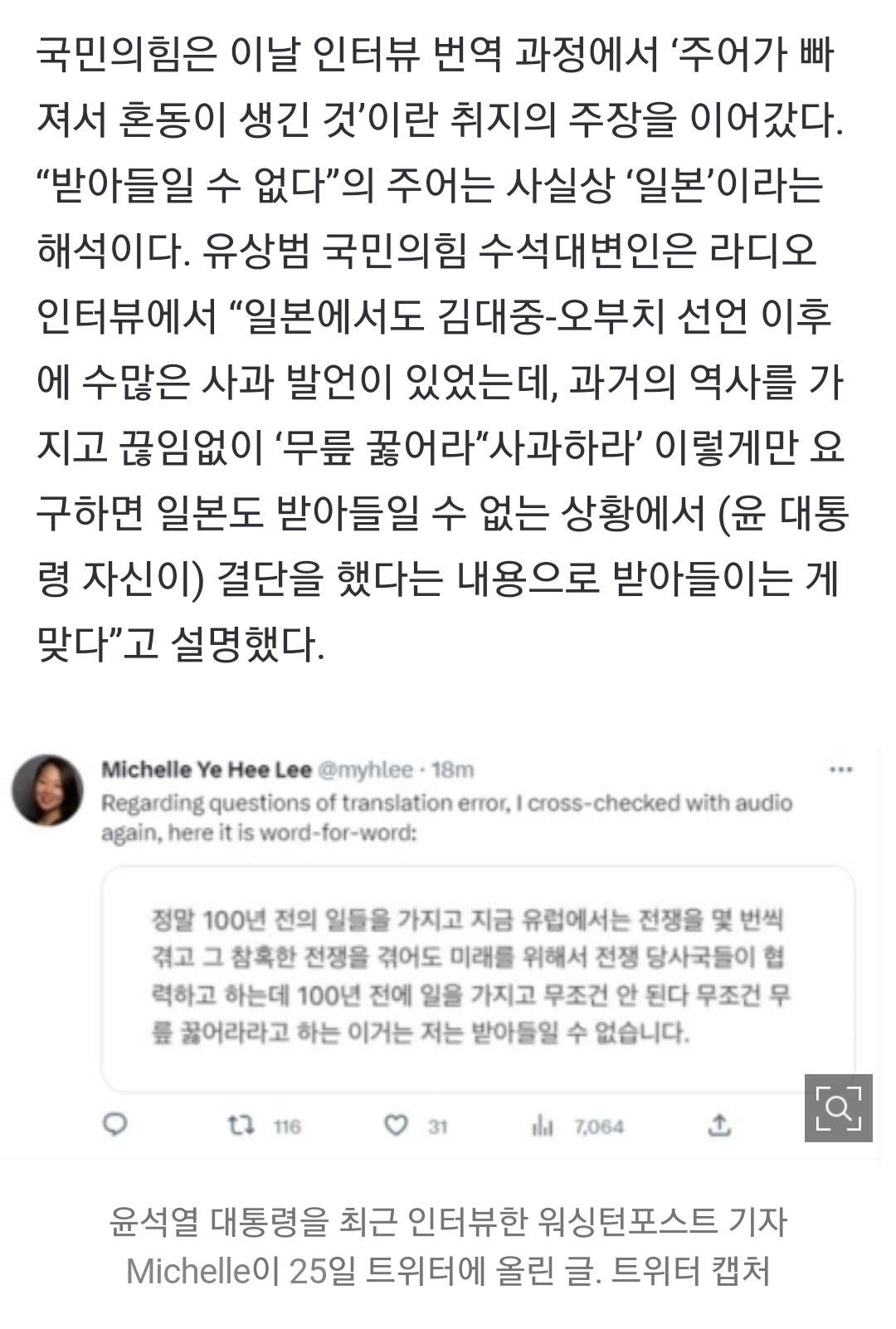 국민의힘, 인터뷰 오역 주장에