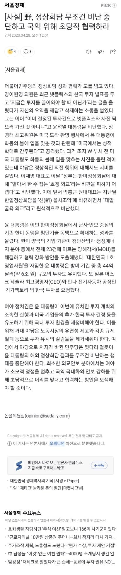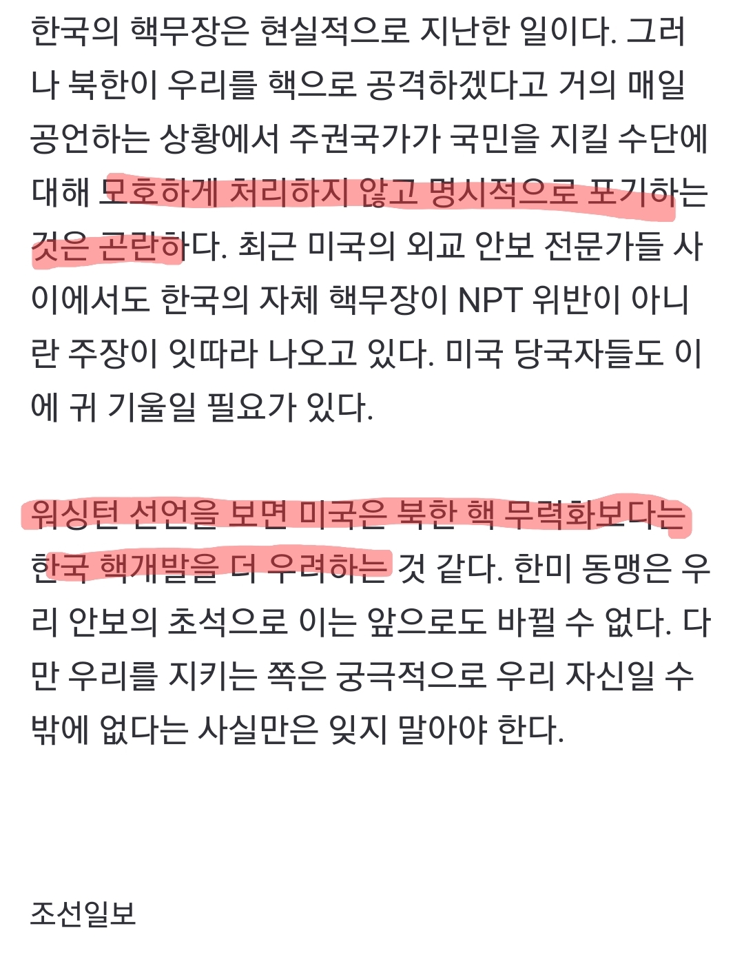 원래 조선일보는 우파 대통령이라도 초심 잃었다 싶으면 가끔씩 쓴소리해서 바로잡아줌