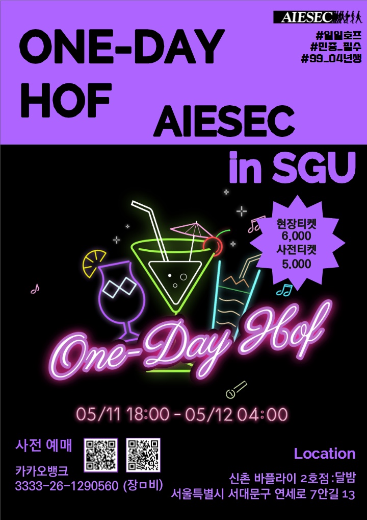 [D-3] AIESEC(아이섹) in SGU X 신촌 바플라이 달밤 일일호프