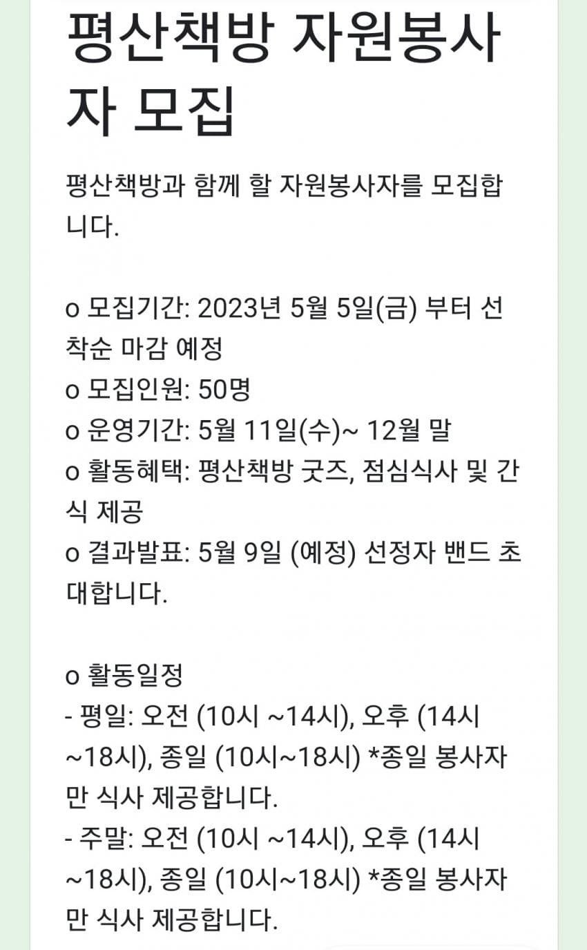 애초에 핀트가 왜 자원봉사자를 구하냐도 아니고