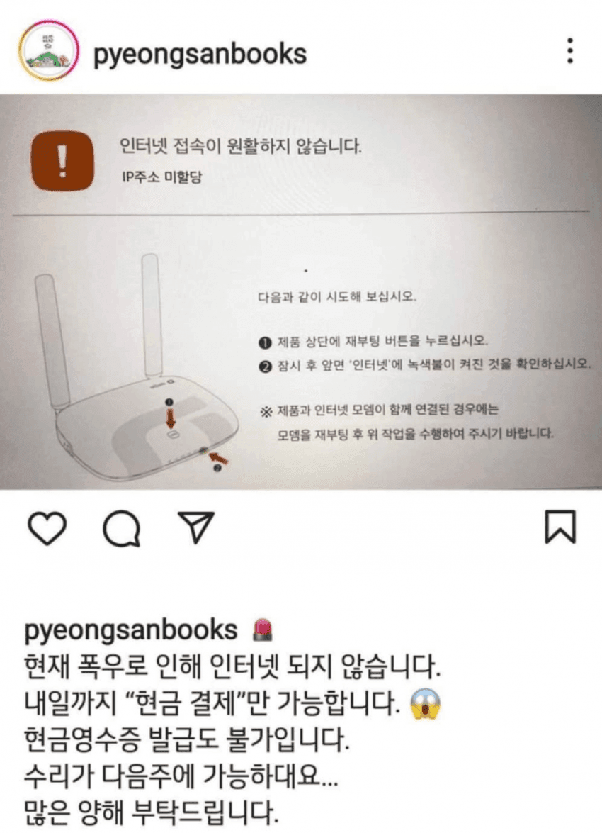 수기로라도 작성하면 그만인데 인터넷 핑계는 좀 추하지