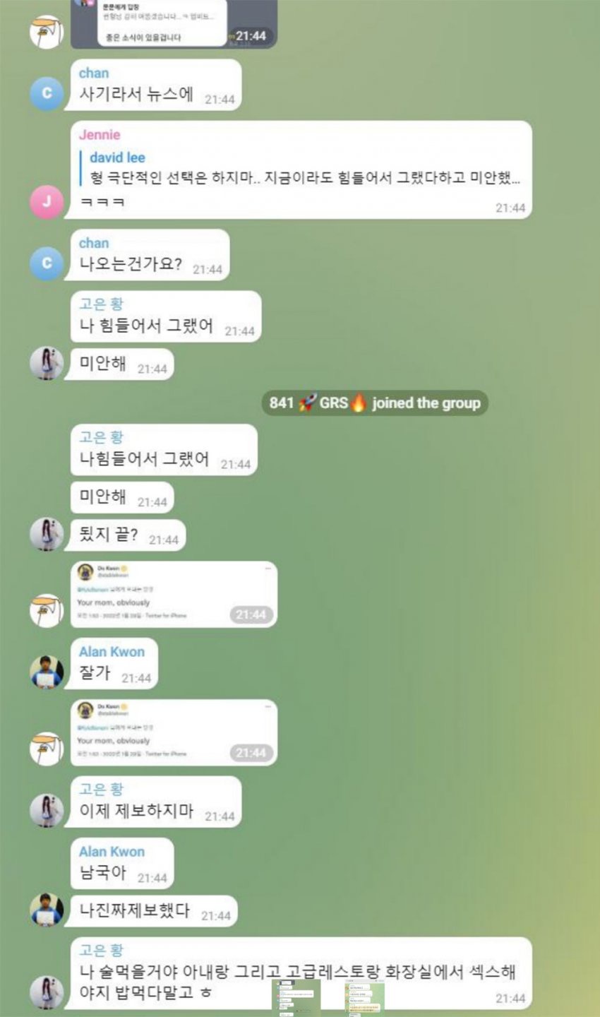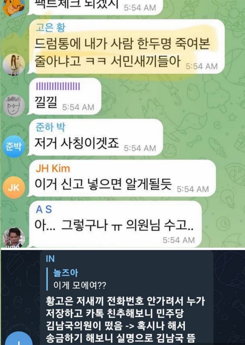 실제 김남국 의원 텔레그램 계정에는 휴대전화번호가 '전화번호' 란에 입력되어 있어 인증 사실이 확인되지만, 황고은 계정에는 번호가 '자기 소개' 란에 적혀 있어 임의로 입력한 것임을 알 수 있다.