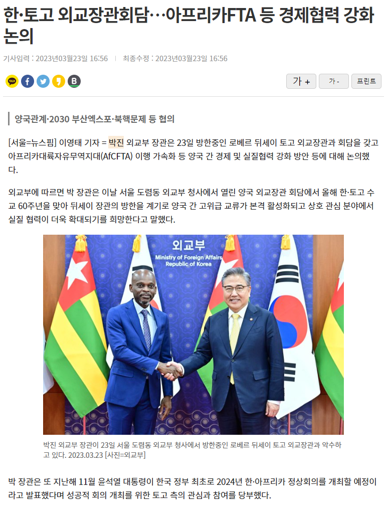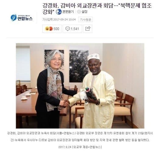 토고랑은 fta 경제따위를 논하지만 감비아와는 무려 북핵문제 협조를 약속하신 강경화 장관님….