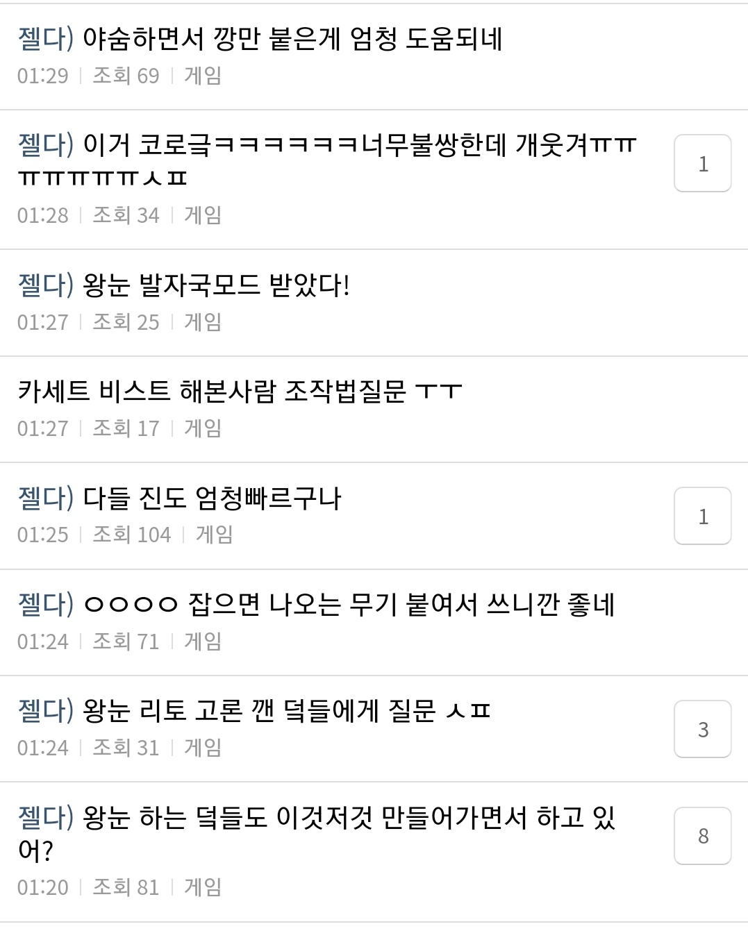 더쿠 게임게시판 들어가보니까 젤다 얘기로만 도배되어있던데 여자가 닌텐도 게임을 한다고??? 충격 먹음..