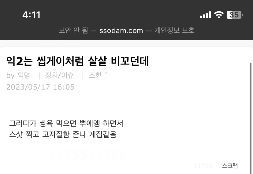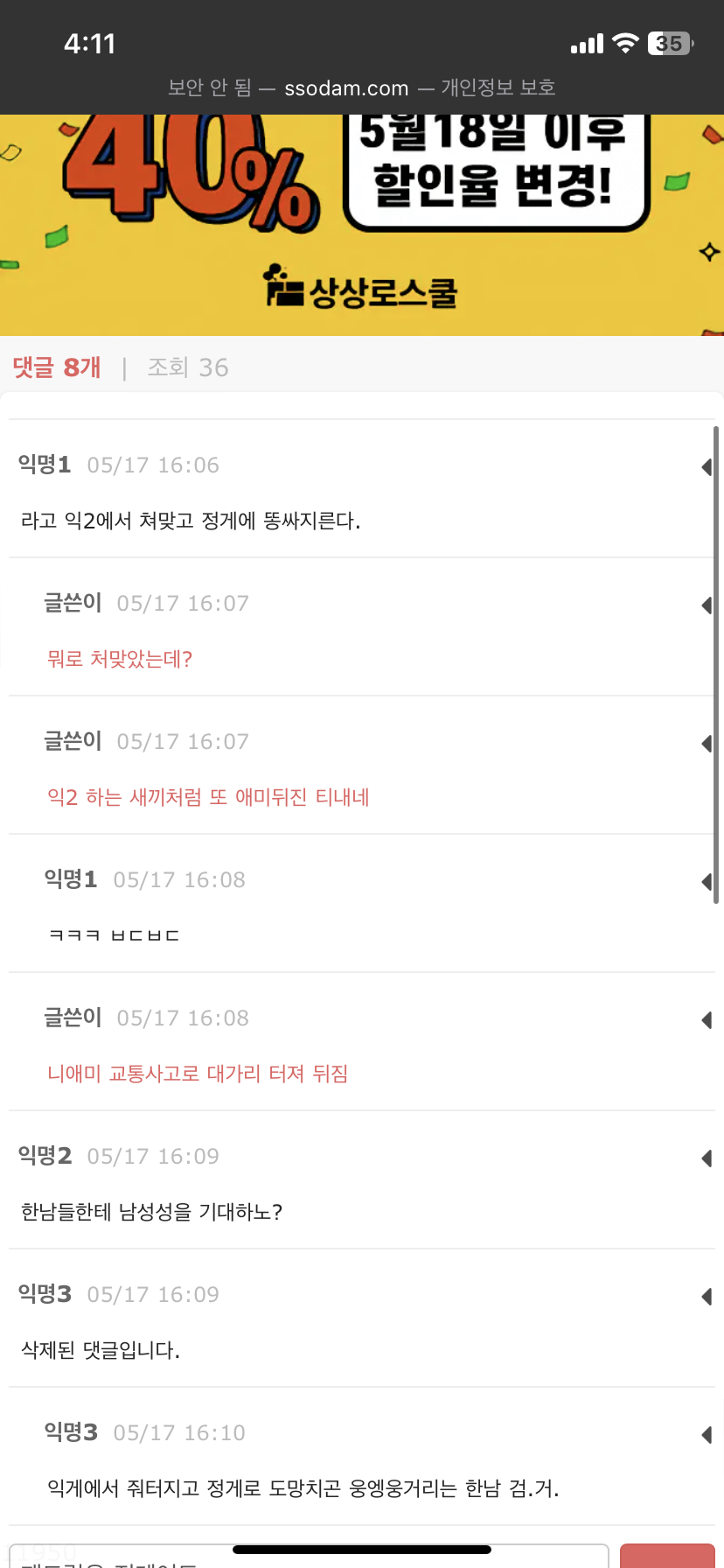 익게에서 비꼼당하고 정게로 튀어서 부들거리는 감정 주체 못하고 쌍욕박던 상남자 호소인 글삭했네 ㅋㅋㅋㅌㅋㅋ