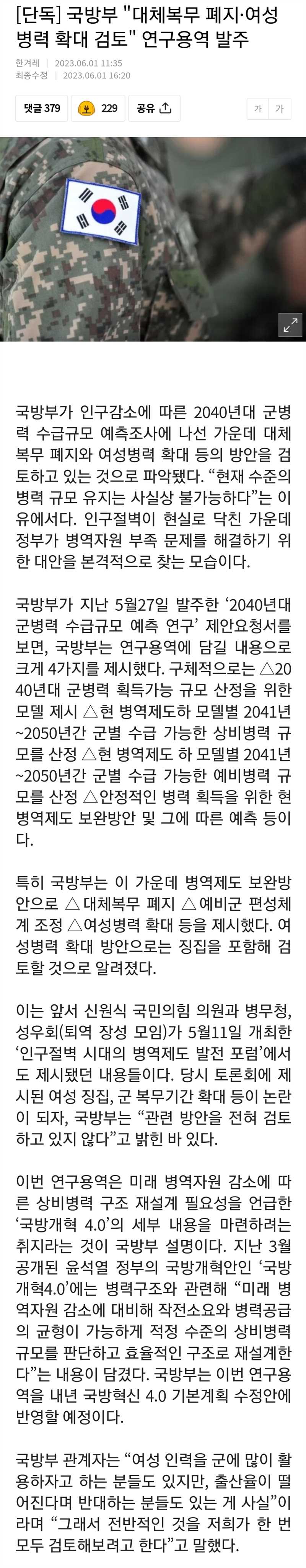 애는 결혼해야 낳기 때문에 남자 군기간 늘리는것보딘 여자 군대 보내 1년반 고정이 출산율 악영향 더 낮을거 같음ㅋㅋ