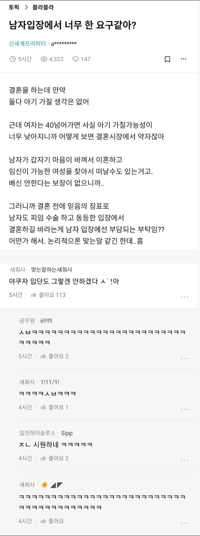 자기는 상폐됐으니까 남자도 부랄떼라는거자나 ㅈㄴ웃긴디 ㅋㅋㅋ