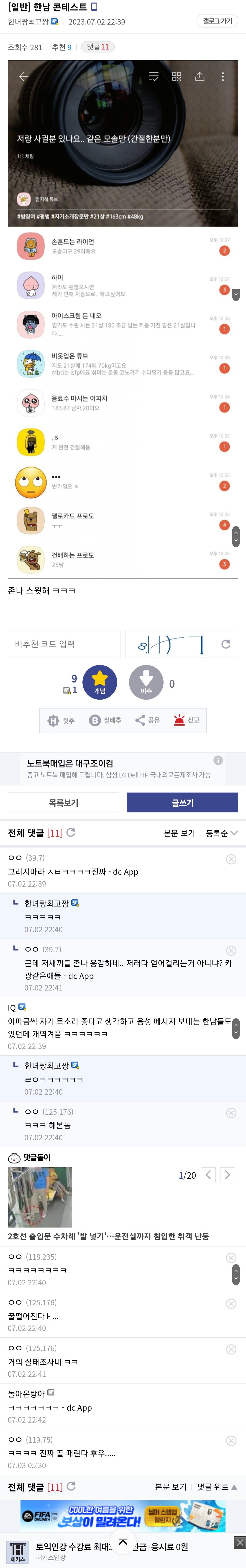 출처 - 모태솔로 갤러리