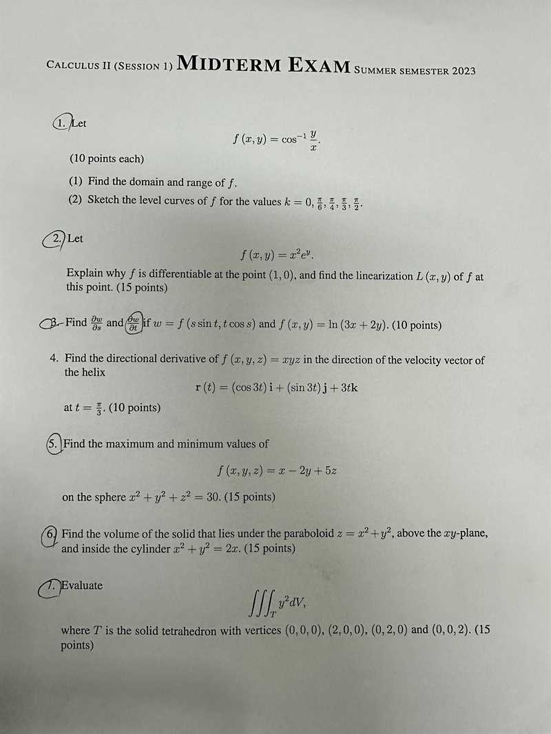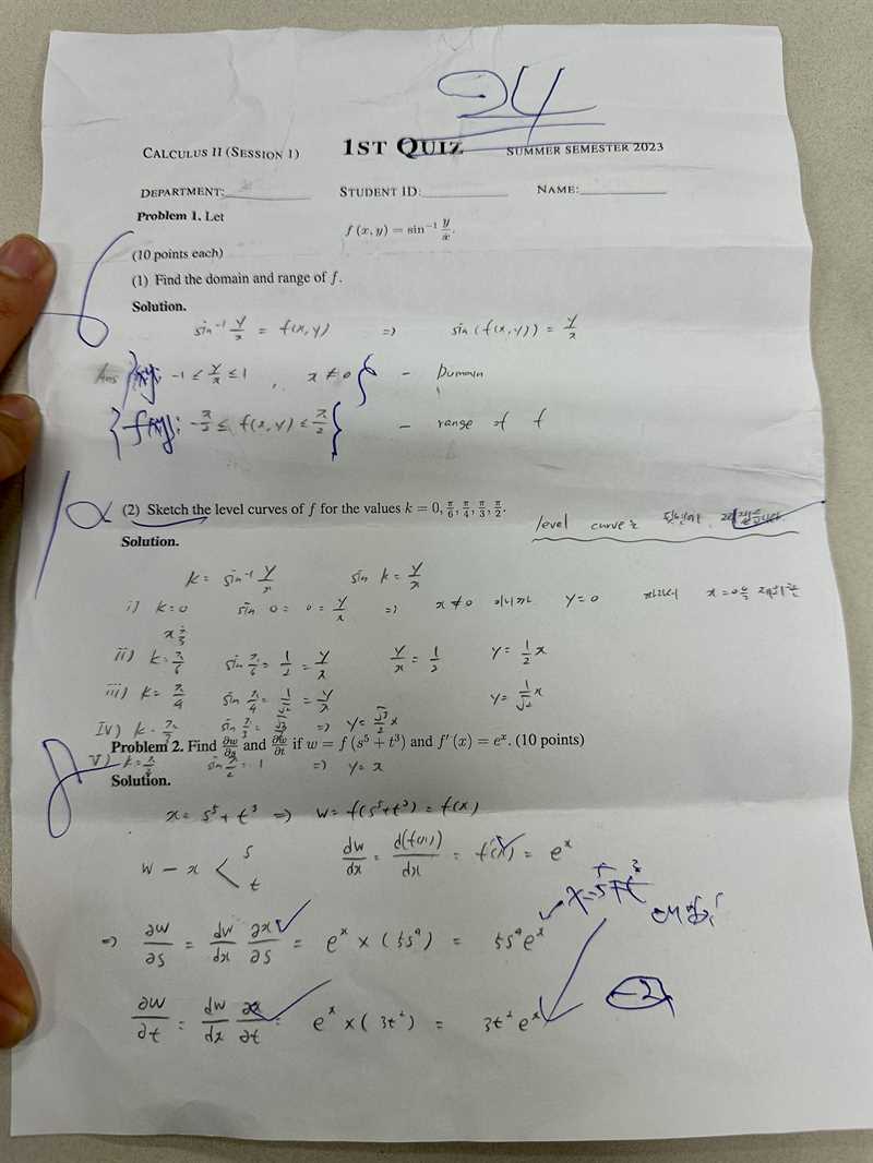 이영록 교수님 / 미적분학 II / 2023 여름 계절학기 / 1차 퀴즈+중간고사