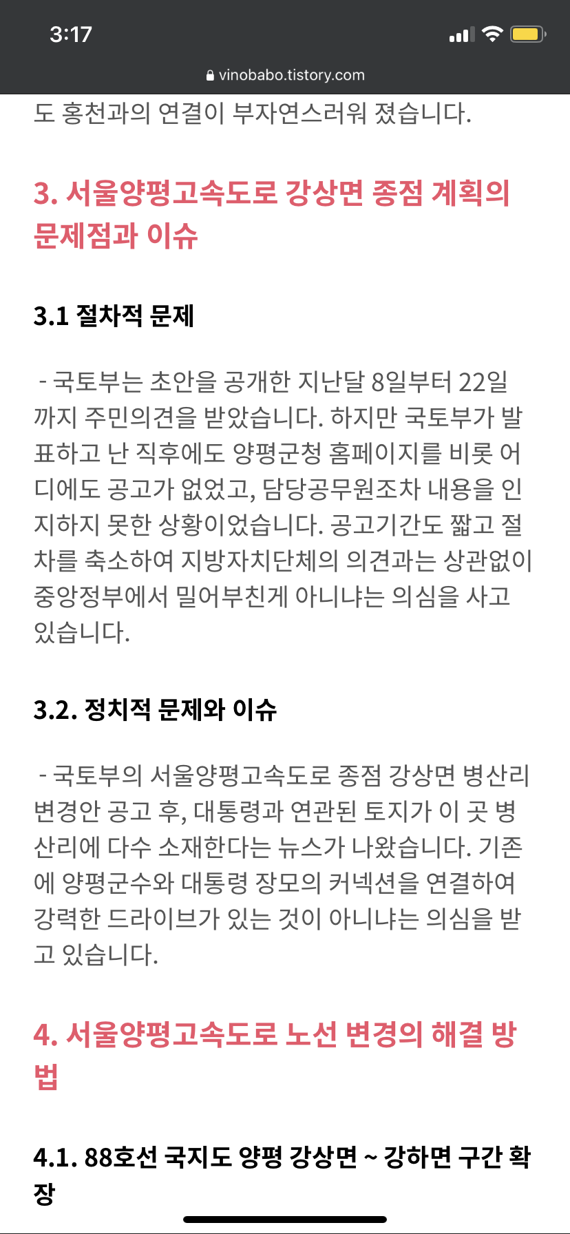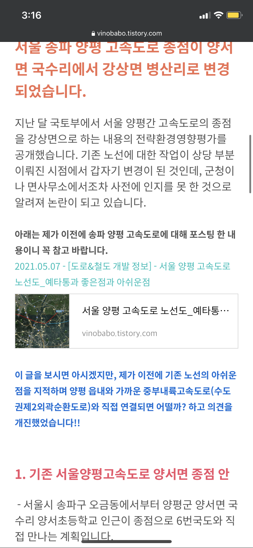 똑같은 사람이 바뀐 수정안에 대해 올린 글임 이 사람은 일단 돈은 더 들지만 향후 더 나은 방향을 보려고 하는 거 같음. 근데 각종 이권이 판치는 고속도로 노선이 애초 건설 취지에 퇴행되게 바뀌고 ㅇ관련 담당공무원들도 인지를 못하고 있었다? 이 사람의 개인적인 바람이 담긴 수정안을 담당 실무자들도 공유하고 기존안급의 사업타당성 조사를 했는지 의문.
