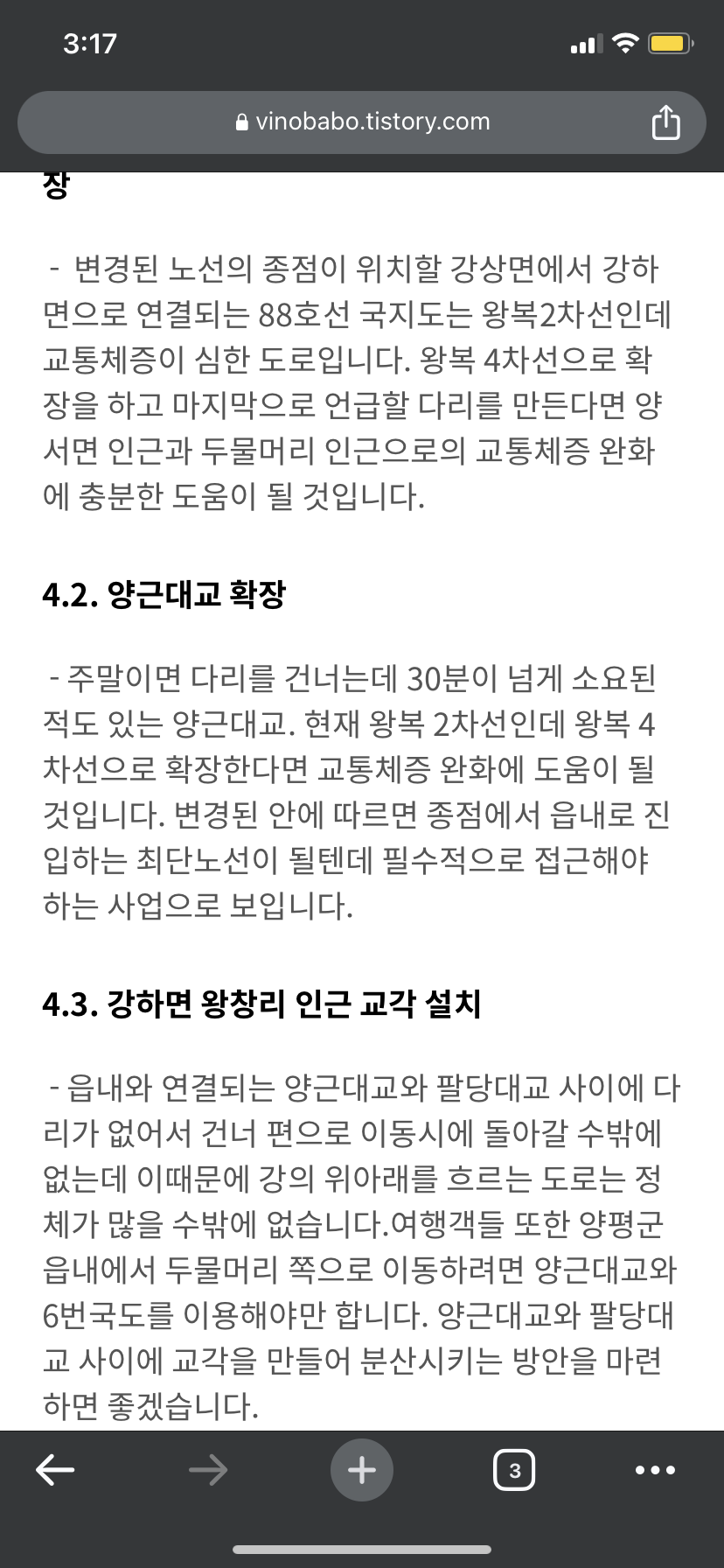 3. 수정안은 남양평 하이패스 ic앞에서 끊기는데 (네이버 지도 검색해보셈) 서울시민 입장에서도 두물머리를 빠르게 가느냐 vs 강원도로 빠르게 진입하느냐 압도적으로 후자가 이득임
