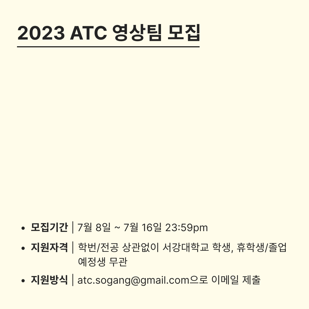 안녕하세요, ATC 기획단에서 영상팀원을 모집합니다 :)
