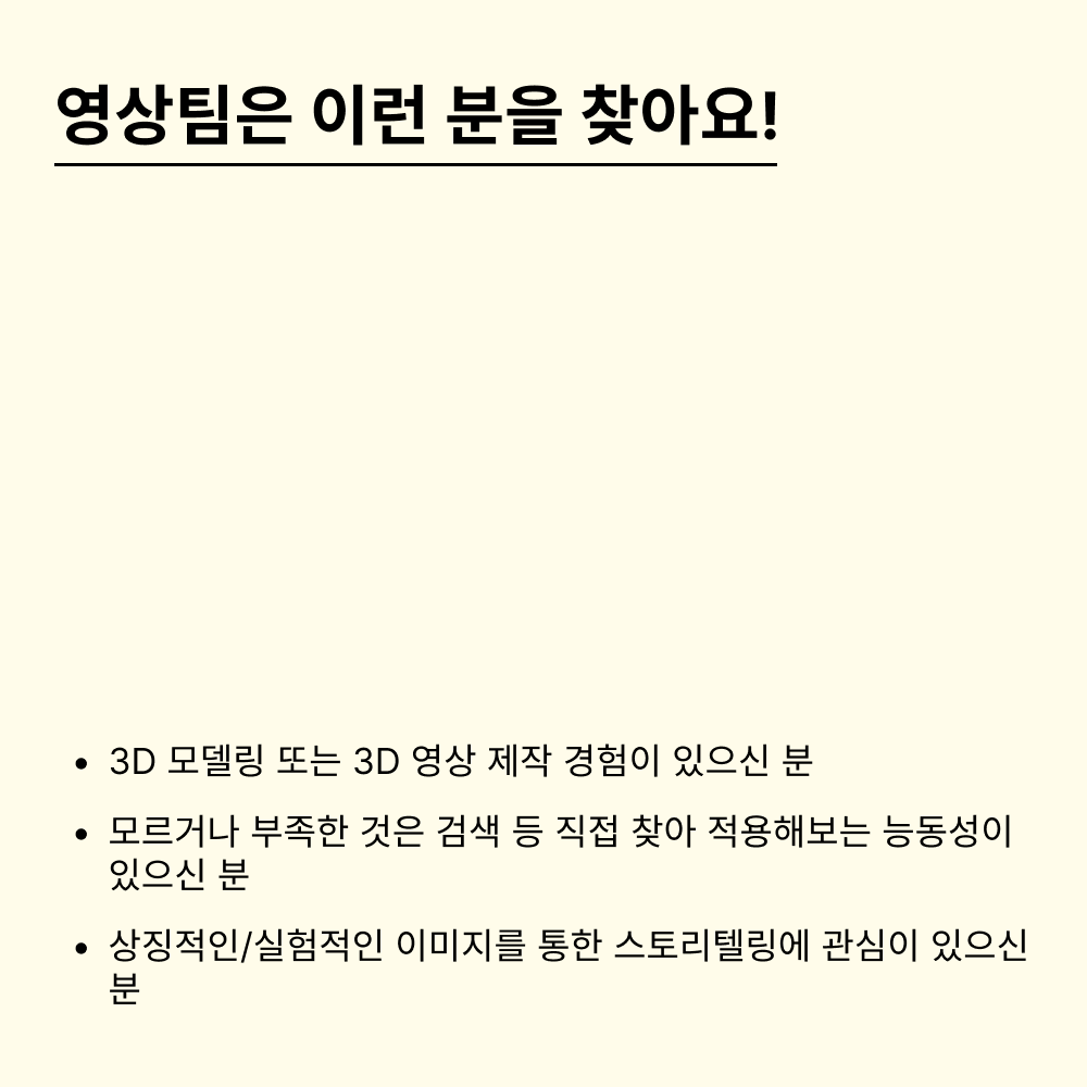 - 3D 모델링 또는 3D 영상 제작 경험이 있으신 분