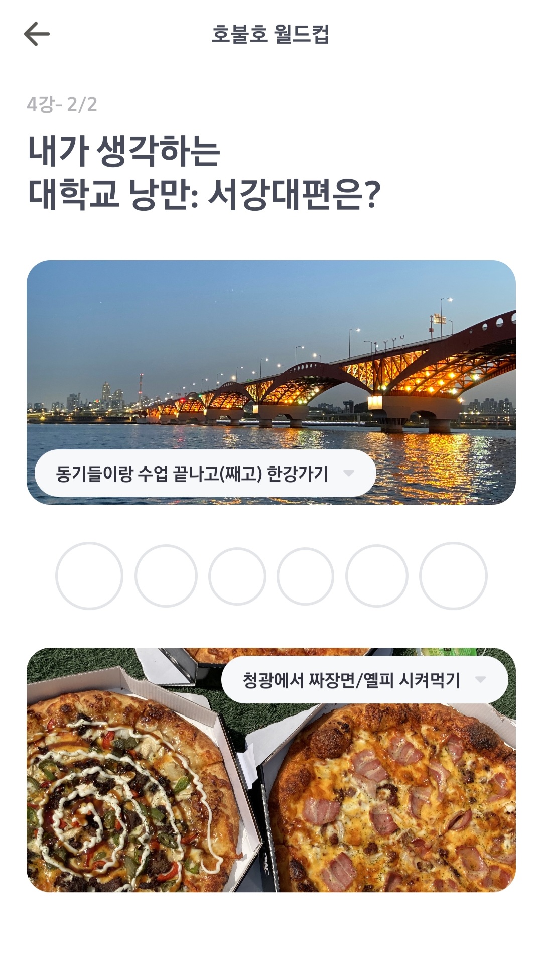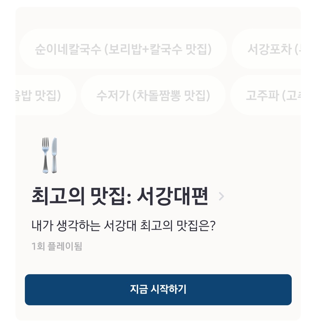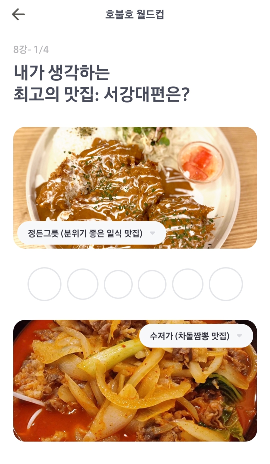 저희가 <Types>라는 소셜플레이그라운드 앱과의 산학협력을 통해 서강대학교만의 호불호 월드컵을 제작했습니다!