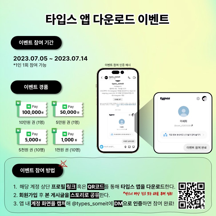 이벤트 참여 링크 : https://www.instagram.com/p/CuTkesCPLXk/?igshid=MzRlODBiNWFlZA==