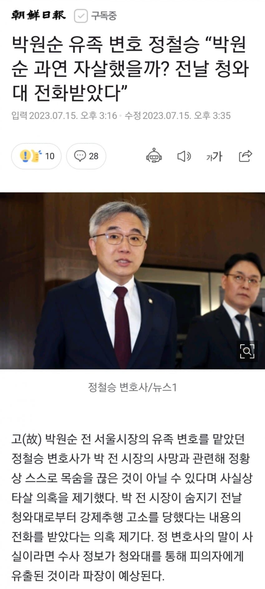 박원순 유족 변호사 "박원순 과연 자살했을까? 전날 청와대 전화받아.."
