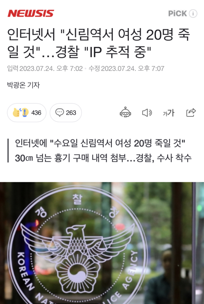 어제 올라온 살인예고글