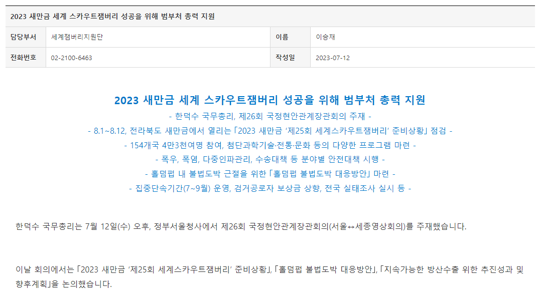 이렇게 여가부 행안부 문체부 등등까지 포함된 조직위까지 구성하고