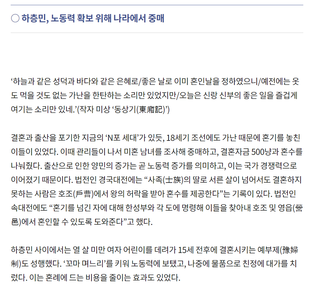 너네들 조선시대에도 저출산이 있었던거 아냐?