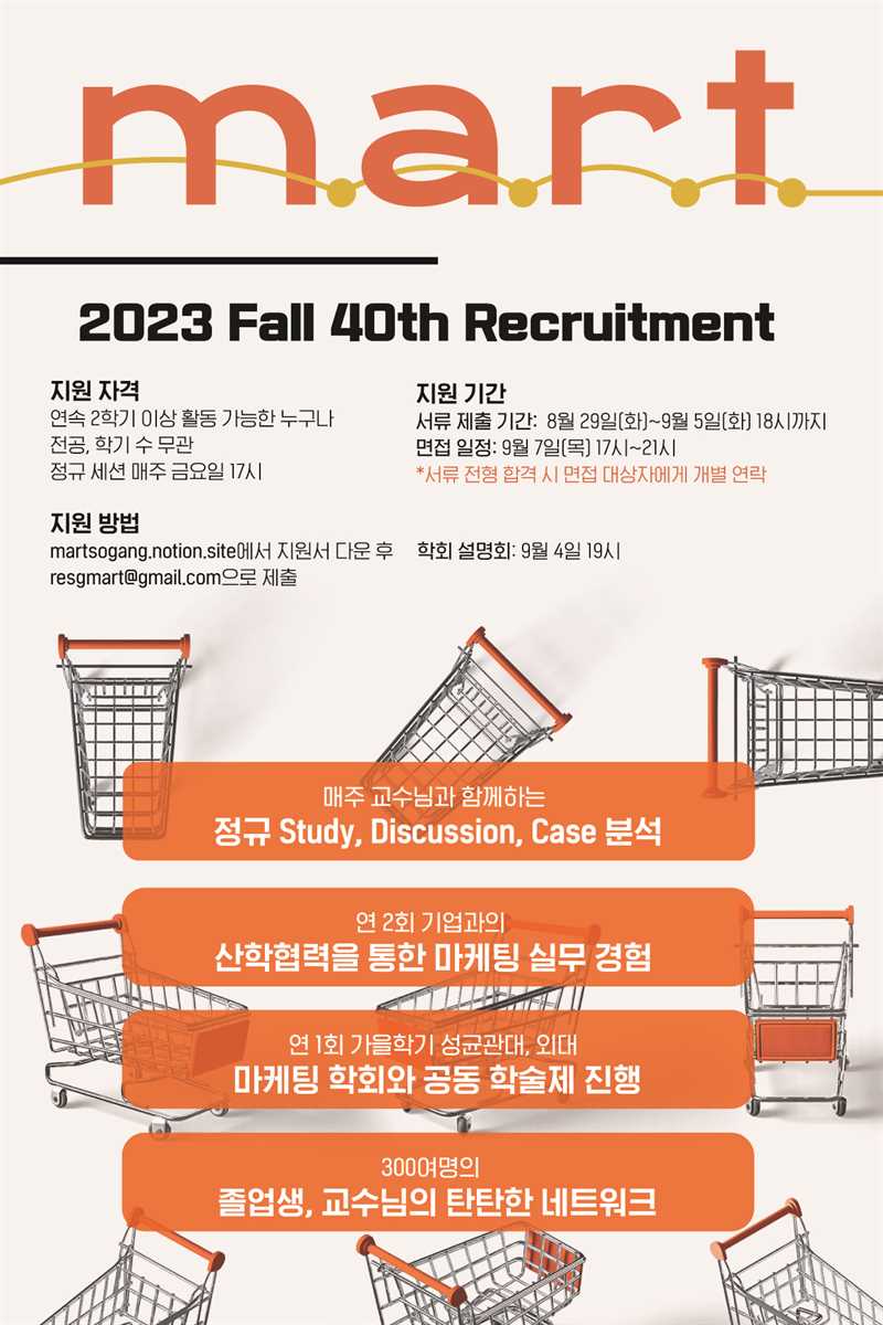 [M.A.R.T.] 서강대학교 마케팅 연구 학회인 마트에서 40기 선수를 모집합니다!