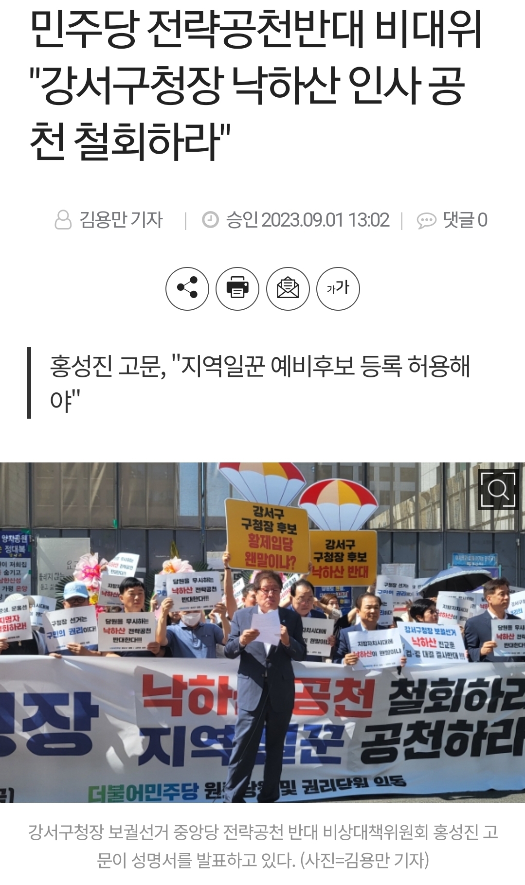 민주당이 강서구랑 관련없는 후보 전략공천해서 강서구 당원들 반발이 심하네