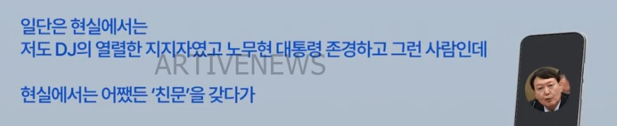 100%, 200% 다 맞는 말씀인데, 일단은 현실에서는 저도 DJ의 열렬한 지지자였고, 노무현 대통령 존경하고 그런 사람인데 현실에서는 어쨌든 '친문'을 갖다가 이 정권의 연장을 막기 위해서는 어찌 됐든 국힘하고 다 손을 잡아야 돼.