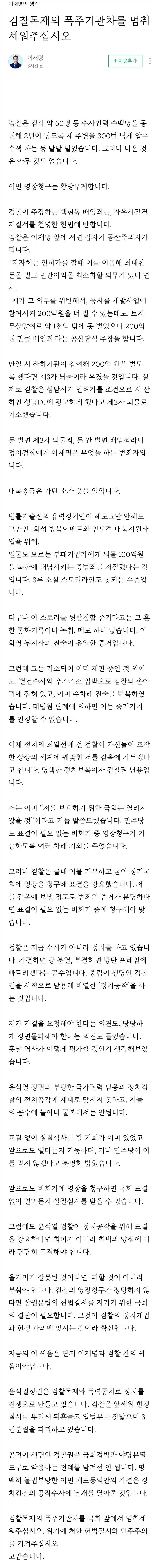 이재명 입장문 발표
