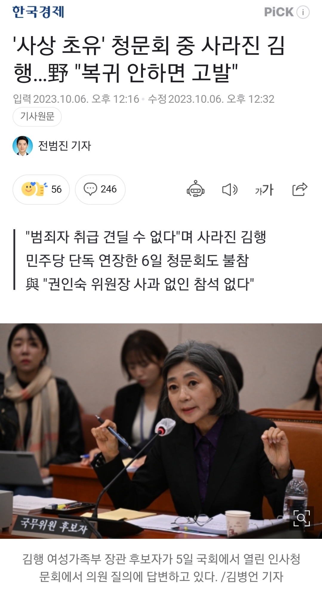 청문회 보고 얘기함? 김행 쉴드가 다 있네