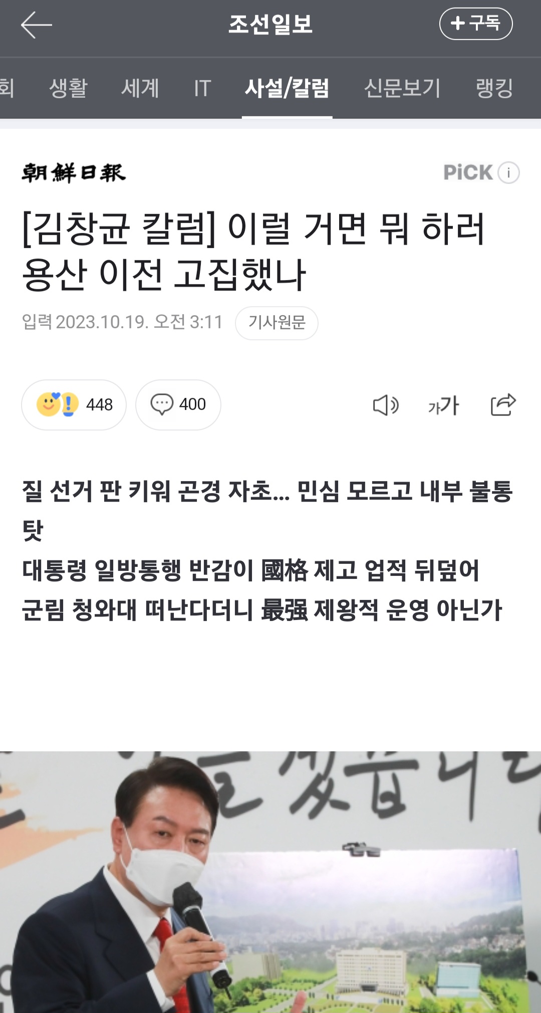 극우 매체 조선일보: "윤석열은 역대 어느 대통령보다 제왕적 국정 운영을 하고 있다"